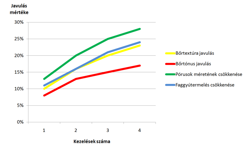 Az első lézeres arckezelés után 5-15%-os javulás tapasztalható. Ekkor a pórusok méretének csökkenésében a leglátványosabb az eredmény. A negyedik arckezelést követően már 15-30%-os javulás érhető el a bőr textúra, arcbőr tónusa, a pórusok méretének terén, és a faggyútermelés csökkenésében is.